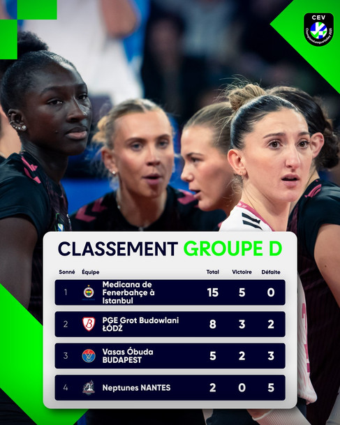Il n'y a pas eu de miracle, Nantes s'est incliné lors de son déplacement à Budapest dans le cadre de la 5ème journée de Ligue des Champions. Une défaite (0/3) qui scelle les espoirs de qualification ou de repêchage en CEV Cup. Opposées à des joueuses du Vasas appliquées, les Nantaises n'ont pas su trouver la solution face à un fond de jeu hongrois solide. Poussées à la faute ou déstabilisées par la puissance des contre-attaques locales, les coéquipières d'Haylie BENNETT (11pts) ont concédé un cinquième revers dans leur groupe D, synonyme d'élimination dans cette compétition. Les Neptunes termineront leur aventure européenne sur le terrain du Fenerbahce Istanbul, le 22 janvier prochain, dans un match qui n'aura plus aucun enjeu sportif.